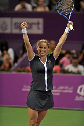 Doha, 31/10/2010 KIim CLIJSTERS (BEL) wins the 2010 WTA Championships after beating in the final world N.1 Caroline WOZNIACKI (Den) 6-3 5-7 6-3. Photo Ray Giubilo