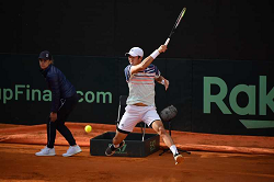 2020 Davis Cup Qualifier Italy vs Korea Stefano Travaglia(ITA) vs Yunseong CHUNG (KOR) Photo © Ray Giubilo/ITF