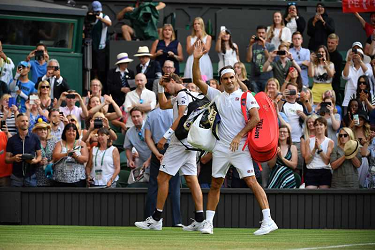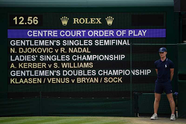 2018 The Championships,Wimbledon Mens semifinal Novak Djokovic (SRB) defeated Rafael Nadal (ESP) 6/4 3/6 7/6(11-9) 3/6 10/8 in 5 hours and 17 minutes Photo © Ray Giubilo