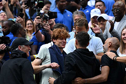 2024 The Championships,Wimbledon Jannik Sinner (ITA) defeated Matteo Berrettini (ITA) 7-6(7/3) 7-6(7/4) 2-6 7-6(7/4) in 3:42 Photo © Ray Giubilo