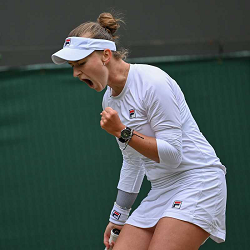 2024 The Championships,Wimbledon Ladies quarterfinal Barbora Krejcikova(CZE) defeated Jelena Ostapenko (LAT) 6-4 7-6(7/4) Photo © Ray Giubilo